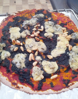 - Spread spinach mixture over bases then cover with cheese of choice & sprinkle over nuts