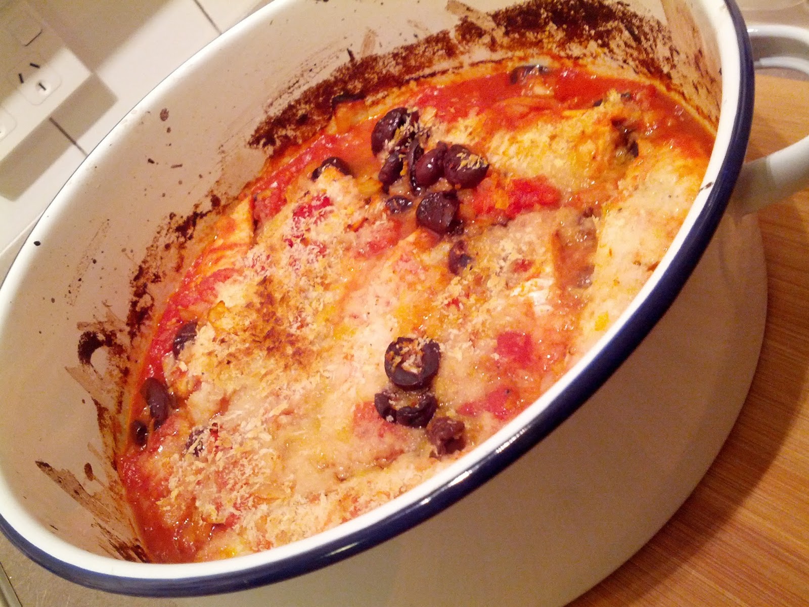 - Sprinkle over breadcrumbs and bake for about 5-10 minutes. Take out of oven, sprinkle with cheese & finish off under the grill to brown up the top.