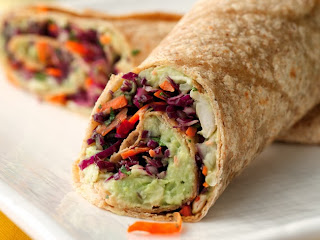 - To assemble the wraps, spread the bean-avocado mixture onto a wrap and top with the cabbage-carrot slaw. Roll up & enjoy!